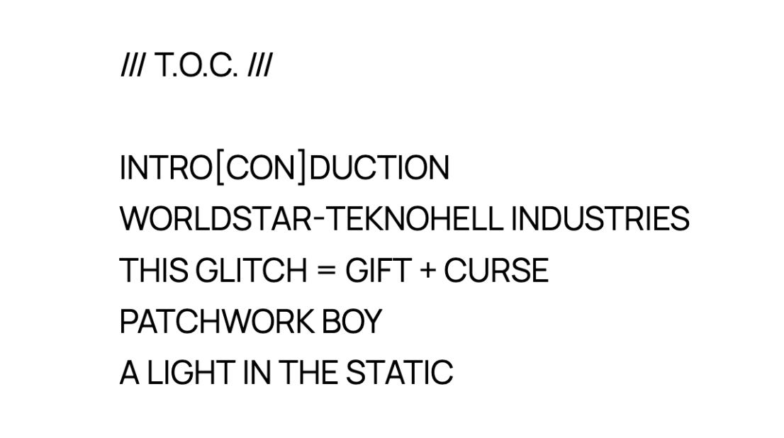 The brightest moments are the ones where Sunmundi’s writing sings, and those moments coincide with the crystallization of his kin. “This Connection (Belongings)” is one of several examples of what Paul Éluard called l’amour-poésie. As expected, Sunmundi grapples with the teknohell trappings even as he serenades his love songs.