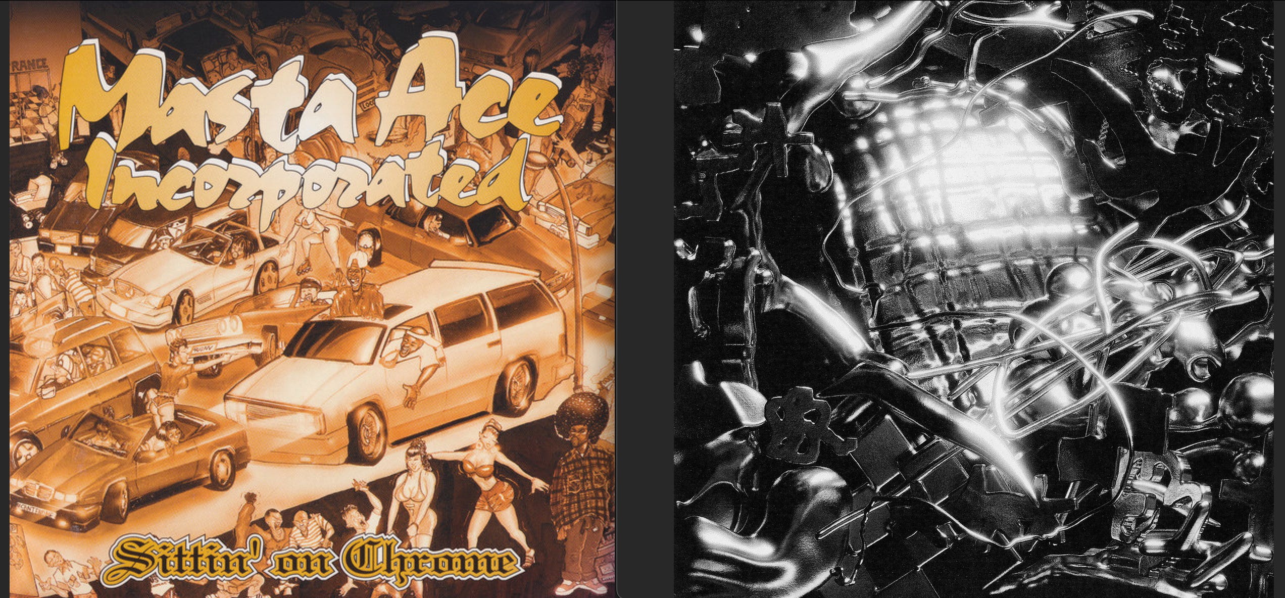 The cover art for Masta Ace Incorporated’s Sittin’ on Chrome actually closely resembles Kitasavi’s Contacting art, in metallic aesthetics if not color.