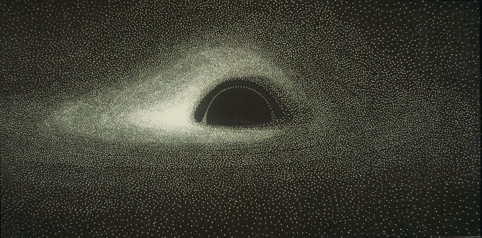 But, as we hear on “Bright Moments,” Sunmundi is dead set on dirt. “My hip bone connected to my thigh bone,” he raps, reviving “Dem Bones,” structuring his own skeleton. Later, he details how integral these bones are to the mix. He writes “down to the bones” to “make broth” on “Idling Nowhere” and sacrifices his “own bones in the brine” on “Spirit Ballistics.” Ossified concoctions. Even his neural pathways bend peatward: “Brain connects to the ground I stand on.” If we are what we carve, as he argues, then we should remain grounded in materiality. Sunmundi’s syntax makes it so: “I’ll write it in bold, bronze and gold, / Fight for the sliver of light posed vs. black hole.” Sliver scans as “silver” to slip between the “bronze” and the “gold,” metals extracted from [how about some hardc]ore. Sunmundi asks us to shape ourselves into being, the so-called “light posed” against the inescapable event horizon of a “black hole.” Vocals and production create a dense, dulcet noise wall. Sasco builds layers of spiraling, alien clickings. Again, a horn carries the beat, and each beat’s a locked chamber of echoes.